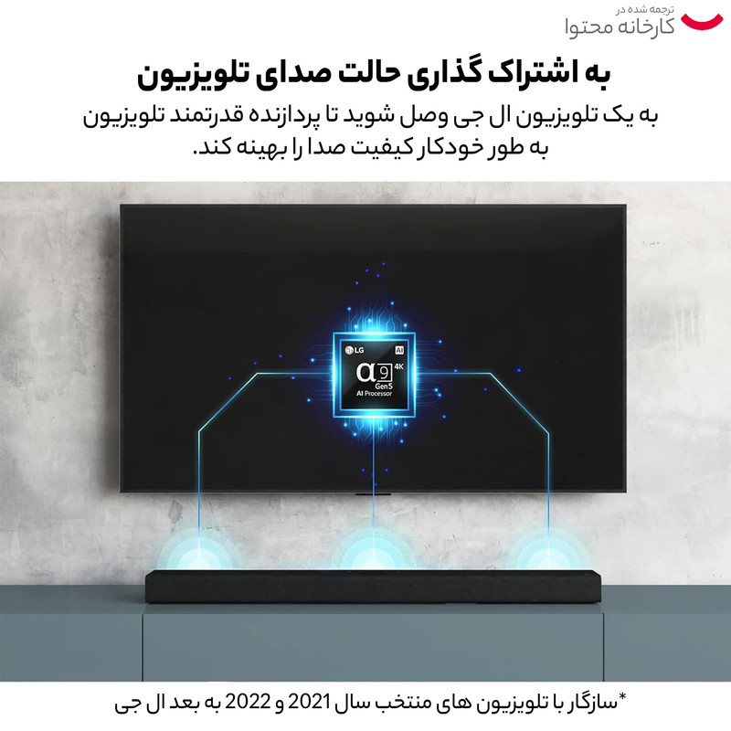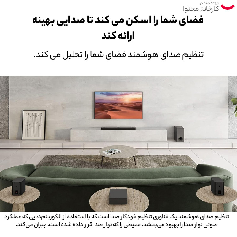 | سایر توضیحات | - تعداد کانال: 5.1.2- جنس دستگاه اصلی - جلو / بالا / پایین: فلز / قاب پلاستیکی / قاب پلاستیکی- جعبه بیسیم - جلو / بدنه : قاب پلاستیکی / قاب پلاستیکی- اسپیکر بیسیم - جلو / بدنه: ژرسه / قاب پلاستیکی- ساب ووفر - جلو / بدنه: ژرسه / چوب- کنترل حالت ساندبار (از طریق رابط کاربری گرافیکی تلویزیون) - وزن جعبه بیسیم: 710 گرم- وزن اسپیکر عقب (2 درگاه): 1380 گرم- وزن ساب ووفر: 5800 گرم |