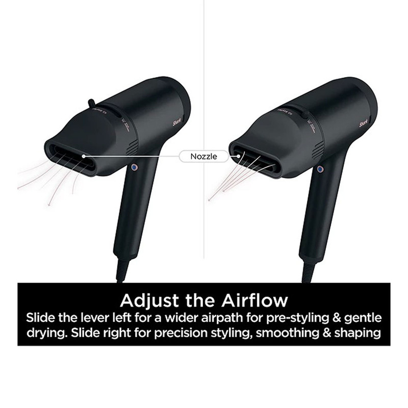 Shark Style iQ HD110UK یک سشوار حرفهای است که فناوری آیکیو خودتنظیم را برای تجربهای بدون دردسر در استایلینگ ارائه میدهد. هر سری هوشمند (Concentrator یا Diffuser) بهصورت مغناطیسی متصل شده و دستگاه بهطور خودکار دما و جریان هوا را بهینه میکند؛ مانند برس صافکننده برای حالت صاف و دیفیوزر برای حالت موجدار یا فر این مدل با قدرت ۱۶۰۰ وات و جریان یونیزهشده مو را سریع خشک کرده و از آسیب حرارتی جلوگیری میکند، ضمن اینکه درخشش و لطافت طبیعی را حفظ مینماید. وزن دستگاه حدود ۷۳۰ گرم و کابل ۲.۵ متری آن امکان استفاده راحت بدون خستگی یا محدودیت در حرکت را فراهم میکند ([turn0search1]، [turn0search6]). تنظیم دستی نیز از طریق سه حالت دما و سه حالت سرعت و دکمه Cool Shot برای تثبیت نهایی مدل دلخواه امکانپذیر است. طراحی ارگونومیک و قرارگیری هوشمند دکمهها بر روی دسته، کاربری آسان را تضمین میکند