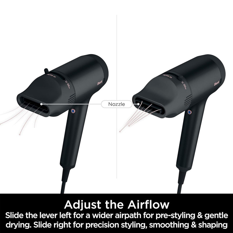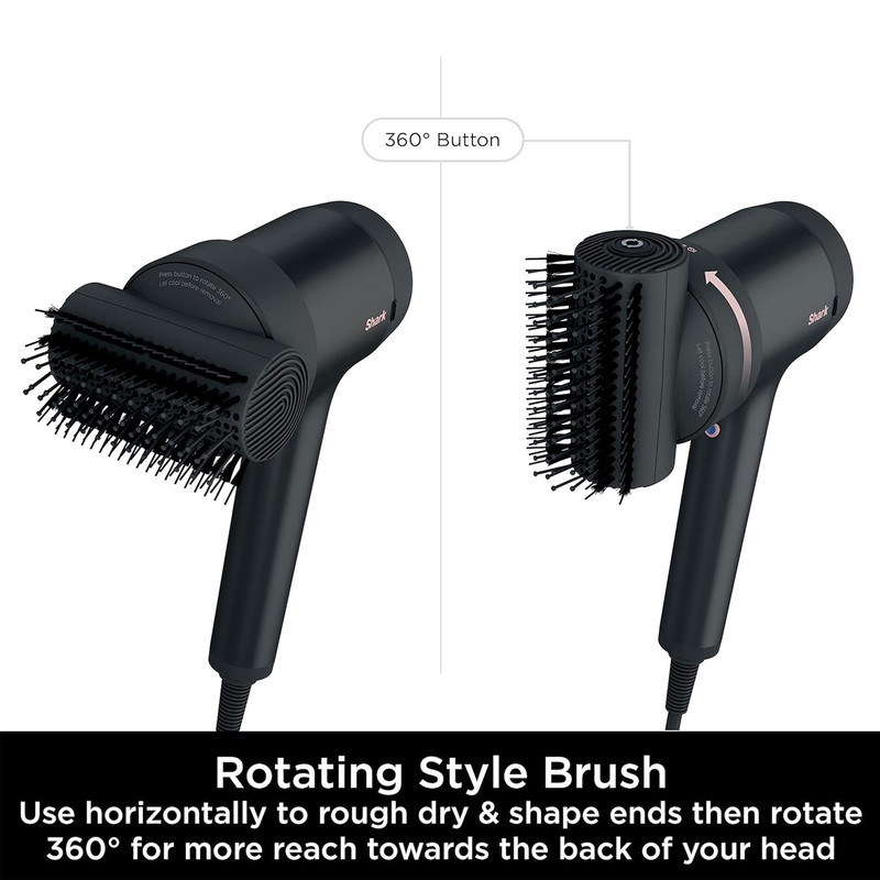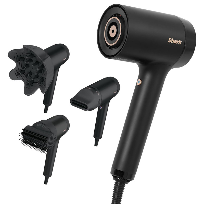 Shark Style iQ (مدل HD120UK) ترکیبی از سشوار و استایلینگ حرفهای است. با قدرت موتور ۱۶۰۰ وات، جریان هوای یونیزهشده تولید میکند که باعث خشککردن سریع و صافشدن موها بدون آسیب حرارتی میشود. فناوری iQ Technology بهصورت هوشمند تنظیمات حرارت و سرعت را بر اساس سری متصلشده اعمال میکند (Style Brush، Diffuser یا Concentrator) سریها بهصورت مغناطیسی متصل میشوند و هر کدام حالت ایدئال را بهطور خودکار فعال میکنند: برس صافکننده برای موهای براق و لخت، دیفیوزر تنظیمپذیر برای حالت موهای فر، و نازل دوحالته برای خشککردن و اصلاح دقیق . وزن این مدل حدود ۵۰۰ گرم است که حمل و استفاده طولانیمدت را آسان میکند. کابل ۲.۵ متری و دکمه خنککن سریع (Cool Shot) نیز برای تنظیم سبک نهایی وجود دارد .