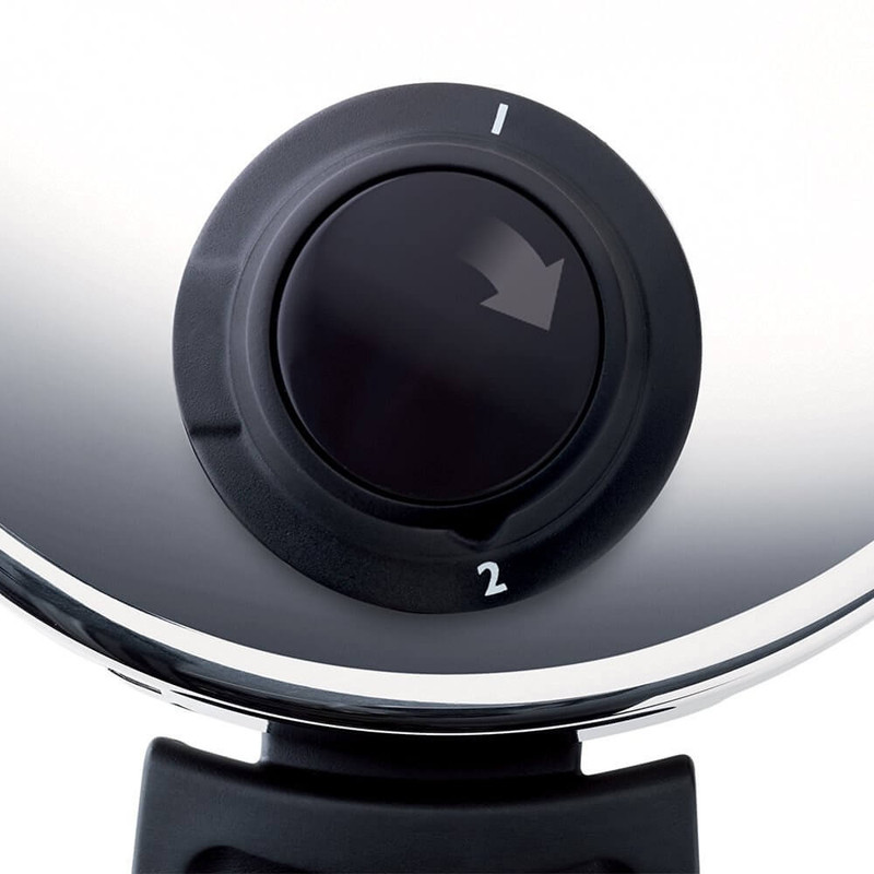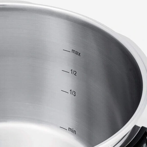 در زودپز های فیسلر تکنولوژی پیشرفته زیادی وجود دارد که کار با آن را آسان و راحت می کند تا از آشپزی لذت ببرید . با استفاده از تکنولوژی پیشرفته امنیتی ، هیچ چیز نمی تواند به اشتباه برسد . تا 70٪ از زمان پخت و پز را کاهش می دهد و این کار باعث می شود ویتامین ها و مواد معدنی تا حد زیادی حفظ شود . اگر درب به درستی بسته شده باشد صدای “کلیک” شنیده می شود و یک صفحه نمایش رنگی در دسته از قرمز به سبز تغییر می کند . 2 درجه روی درب برای پخت مواد دیرپز و زودپز روی درب قرار دارد مرحله 1 برای غذاهای حساس مانند سبزیجات یا ماهی و مرحله 2 پخت و پز سریع برای گوشت و خورشت است . نشانگر روی درب مانند چراغ راهنمایی باعث می شود آشپزی با زودپز کاملا بی خطر باشد . زرد : در حال پختن است . سبز : دمای تنظیم شده رسیده است و زمان پخت و پز آغاز می شود . قرمز: درجه حرارت خیلی زیاد است و فشار بالایی در دیگ جمع شده و باید شعله کم شود . دارای درجه بندی در داخل دیگ از کم تا زیاد .