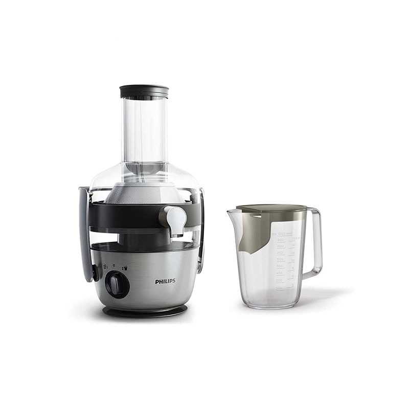 | امکانات و قابلیتها | موتور پر قدرت با توان 1200 وات، دور موتور متغییر با دو سرعت قابل تنظیم، دهانه ورودی بزرگ با قابلیت ورود یک سیب کاملا درسته (80mm)، تکنولوژی فیلتر معکوس آبمیوه گیری های فیلیپس که توانایی 10 درصد آبگیری بیشتر نسبت به سایر آبمیوه گیری ها را دارد و همچنین شما میتوانید خیلی آسان تر تیغه ها را تمیز نموده و از مسدود شدن منافذ جلوگیری کنید، سیستم شستشوی خودکار تیغه که بعد از پایان آبگیری مقداری آب داخل دستگاه بریزید و دستگاه را روی سرعت دو قرار دهید پس از یک دقیقه تیغه و فیلتر دستگاه کاملا تمیز میشود، قابلیت آبگیری میوه های سخت مثل :هویج، کرفس، چغندر، سبزیجات، سیب و …،طراحی و مهندسی در هلند مونتاژ نهایی در کشور چین |