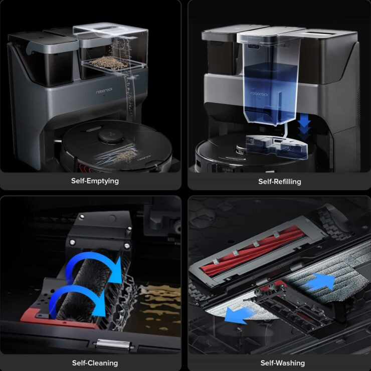 این جارو رباتیک از طریق اپلیکیشن موبایل Roborock و اتصال وایفای ۲.۴ گیگاهرتز قابل کنترل است. از طریق این اپلیکیشن، کاربر میتواند نقشه خانه را مشاهده کند، مناطق ممنوعه را تعیین کند، زمانبندی نظافت را تنظیم کند، و حتی از قابلیتهای پیشرفته هوش مصنوعی آن بهره ببرد. پشتیبانی از دستیارهای صوتی مانند Alexa و Google Assistant نیز امکان کنترل صوتی دستگاه را فراهم میآورد. نحوه جمعآوری زباله از طریق مخزن زباله جارو با گنجایش 0.4 لیتر انجام میشود که با کمک ایستگاه شارژ به صورت خودکار تخلیه میگردد. همچنین، این جارو دارای یک مخزن آب با گنجایش 0.2 لیتر برای تیکشی است. این ترکیب از قابلیتهای هوشمند، کنترل کامل و آسان دستگاه را ممکن میسازد.