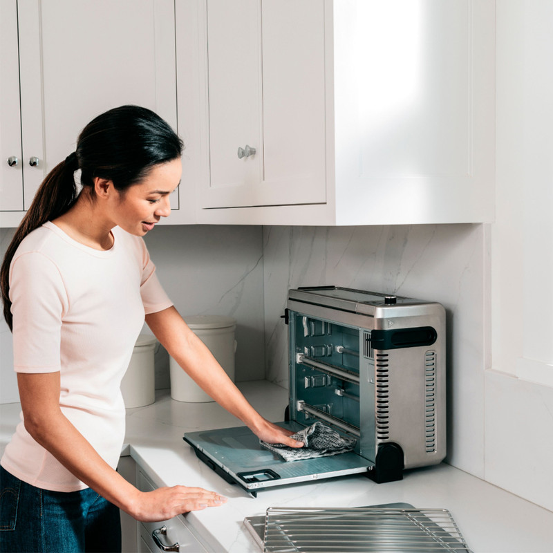 ✨ دارای ۸ برنامه پخت شامل: Air Fry (سرخکن بدون روغن)، Roast (کبابی)، Bake (پخت)، Broil (گریل از بالا)، Toast (تُست)، Bagel (نان بَیگل)، Dehydrate (خشککردن) و Keep Warm (گرم نگهداشتن).