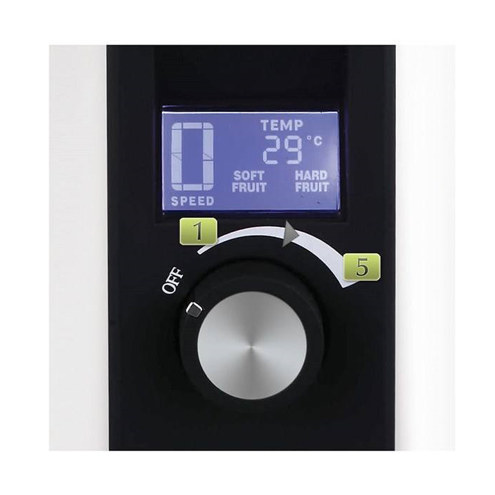 مدل «PJ1000» یکی از آبمیوهگیریهای باکیفیت و کارآمد «فلر» است که ظاهری جذاب هم دارد. کنترل پنل دیجیتال و نمایشگر رنگی این دستگاه، استفاده از قابلیتهای آن را آسانتر میکند. پیچ تنظیم قدرت دستگاه زیر نمایشگر قرار دارد و میتوان سرعت دستگاه را با آن کنترل کرد. دهانهی ورودی در بالا بزرگ است و میتوان میوه را بهصورت درسته هم به آن وارد کرد. تیغههای بُران دستگاه بهسرعت آب میوه را خارج میکنند و تفاله را به مخزن ذخیرهی تفاله میفرستند. مخزن تفاله در پشت دستگاه قرار دارد و به خاطر ظرفیت بالایی که دارد، آبگیری حجم زیاد میوهجات را ممکن میسازد. خروجی توسط لولهای با اندازهی مناسب به جلو هدایت میشود و میتواند به لیوان یا ظرف ریخته شود. به همراه این دستگاه، یک پارچ ذخیرهی آبمیوه هم ارائه میشود. این پارچ طوری طراحی شده است که به لولهی خروجی متصل میشود و قطرهای روی میز نمیچکد. تمیزشدن تیغه و توری دستگاه با برس مخصوص بهراحتی انجام میشود؛ ضمنا پایههای ضدلغزش مانع از حرکت و جابهجایی دستگاه حین فعالیت میشوند. با آبمیوهگیری فلر مدلPJ1000 ، تهیهکردن آبمیوهی طبیعی بسیار راحت است و نوشیدنیهای سالم و طبیعی دور از دسترس نیستند. فلر سالهاست لوازمخانگی برقی باکیفیتی روانهی بازار میکند و مشتریان بسیارش را راضی نگهمیدارد. انتخاب آبمیوهگیری مدل PJ1000 شروع خوبی برای آشنایی با لوازمخانگی فلر است.