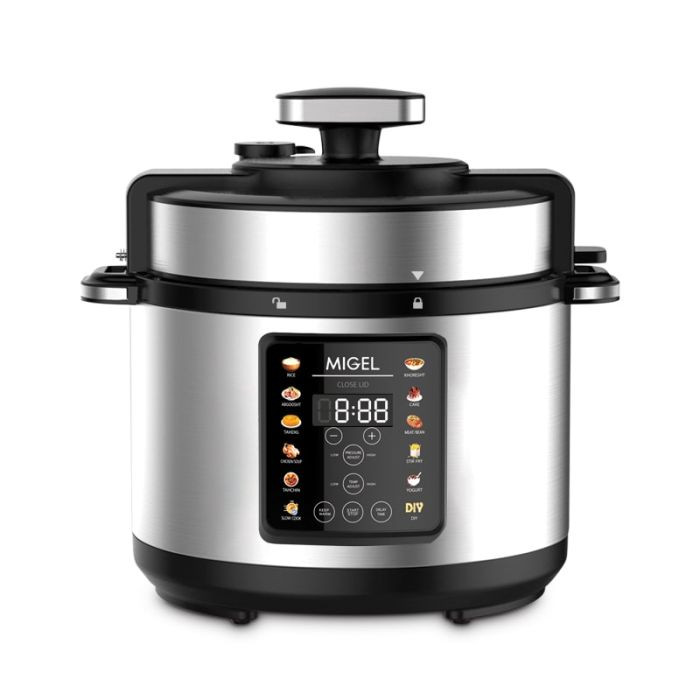 ✨ زودپز برقی میگل مدل GPC 600 دارای **۱۰ برنامه پخت خودکار** است که شامل پخت برنج، خورشت، سوپ، مرغ، گوشت، حبوبات و حتی بخارپز کردن میشود. هر برنامه زمان و فشار مناسب را بهصورت خودکار تنظیم میکند تا غذا به بهترین شکل آماده شود.