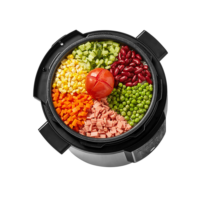 ✨ ایمنی دستگاه نیز در سطح بالایی قرار دارد؛ سیستمهای ایمنی از جمله قفل درب، سوپاپ آزادسازی فشار، سنسور کنترل دما و خاموشی خودکار در مواقع اضافهبار از ویژگیهای برجسته هستند. این یعنی شما با خیال راحت میتوانید دستگاه را روشن بگذارید. ✨ دیگ داخلی از آلومینیوم با پوشش نچسب بوده و مواد غذایی پوسته نمیگیرند؛ جداسازی و شستوشوی آن نیز بسیار آسان است و مناسب استفاده روزمره میباشد.