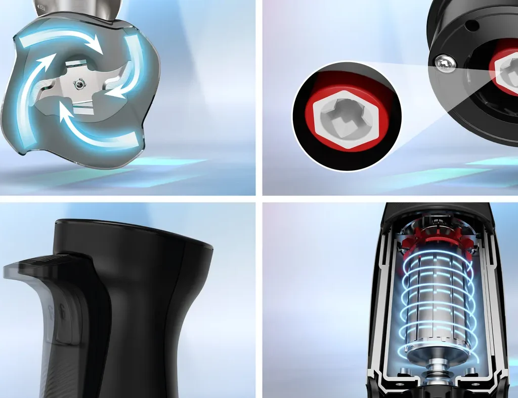 ✨ دسته دستگاه با طراحی ارگونومیک و پوشش ضدلغزش تولید شده تا هنگام کار با سرعت بالا، کنترل کاملی روی دستگاه داشته باشید. وزن مناسب و تعادل خوب دستگاه، کار طولانیمدت را راحتتر میکند.