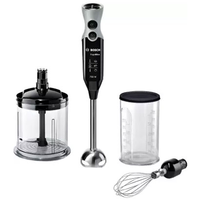 گوشتکوب برقی بوش مدل MSM67160 با توان 750 وات، پایه استیل و عملکرد چندکاره، مناسب برای پورهسازی، خرد کردن و همزدن است.