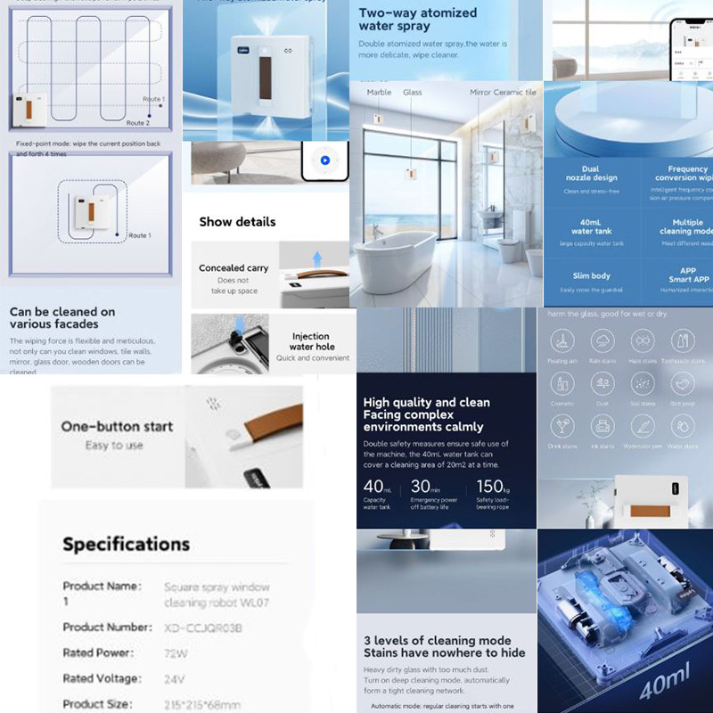 ✨ توان موتور (80 وات) برای مکش قوی و چسبندگی ایمن روی سطح شیشه.