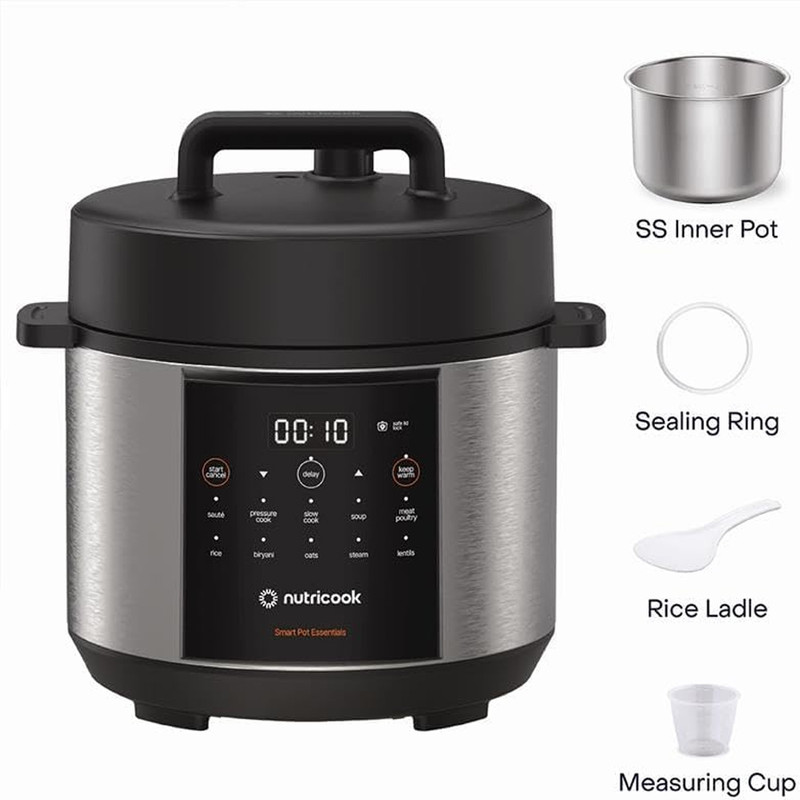 | سایر توضیحات | قابلمه داخلی از جنس استیل ضد زنگ درجه یک بدون پوشش شیمیایی، کاملاً قابل شستشو در ماشین ظرفشویی برای تمیز کردن آسان - درب هوشمند با قابلیت آزادسازی فشار تنها با یک لمس - استفاده آسان و ایمن. سیستم آزادسازی فشار خودکار، فشار را در حین پخت قفل میکند و بخار را با یک لمس آزاد میکند - نیازی به آزادسازی دستی نیست - آشپزی سریع و سالم - در زمان صرفهجویی کنید و سالمتر غذا بخورید. غذاهای مورد علاقهتان را تا ۷۰٪ سریعتر از روشهای سنتی بپزید و در عین حال طعم و مواد مغذی آنها را حفظ کنید - ویژگیهای ایمنی پیشرفته - با 9 سیستم ایمنی داخلی، از جمله کنترل فشار و محافظت در برابر انسداد، میتوانید با اطمینان خاطر و با حداقل بخار، صدا و بو آشپزی کنید - دو برنامه ی تکمیلی ، شامل گرم نگهدارنده و پخت تاخیری |