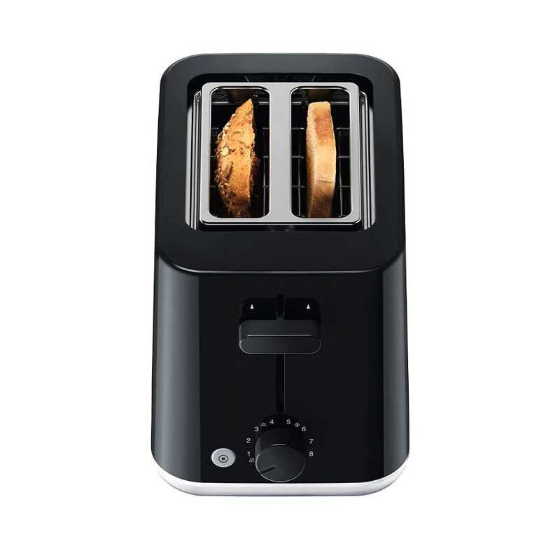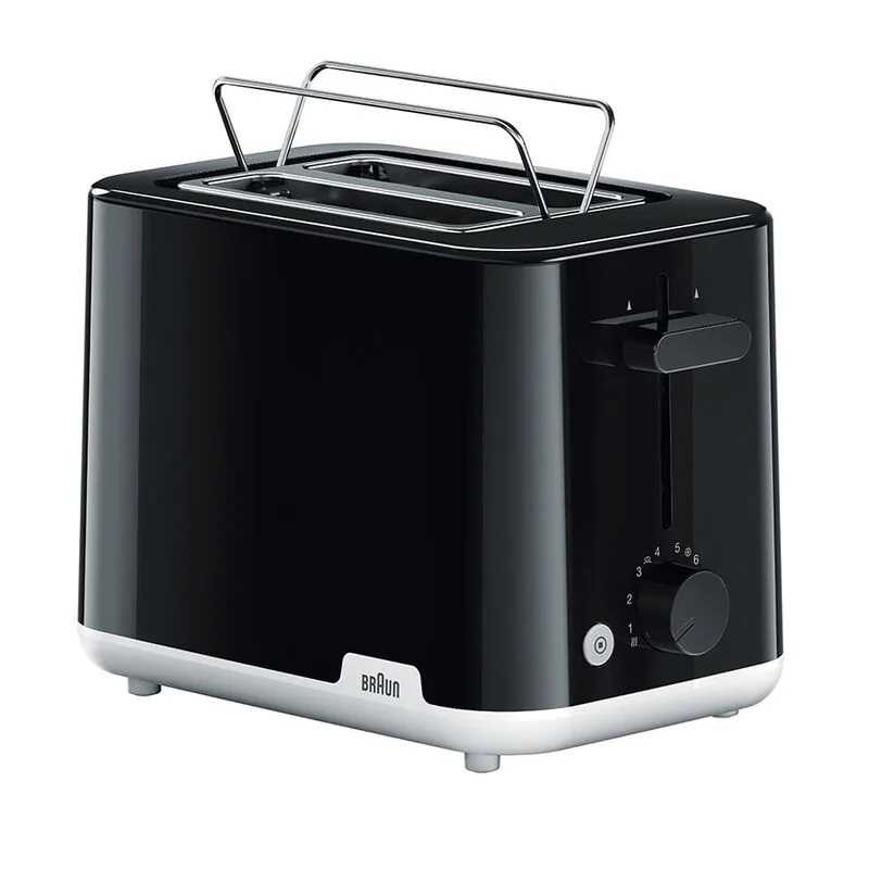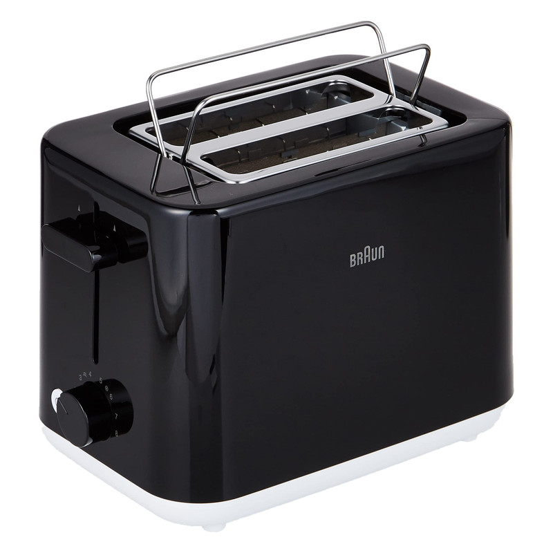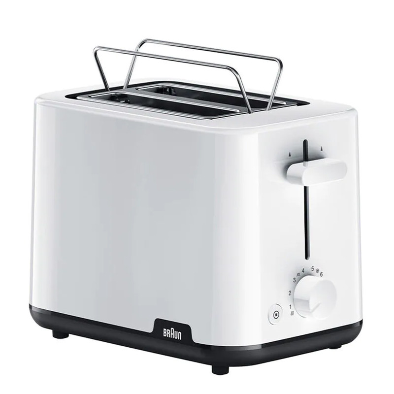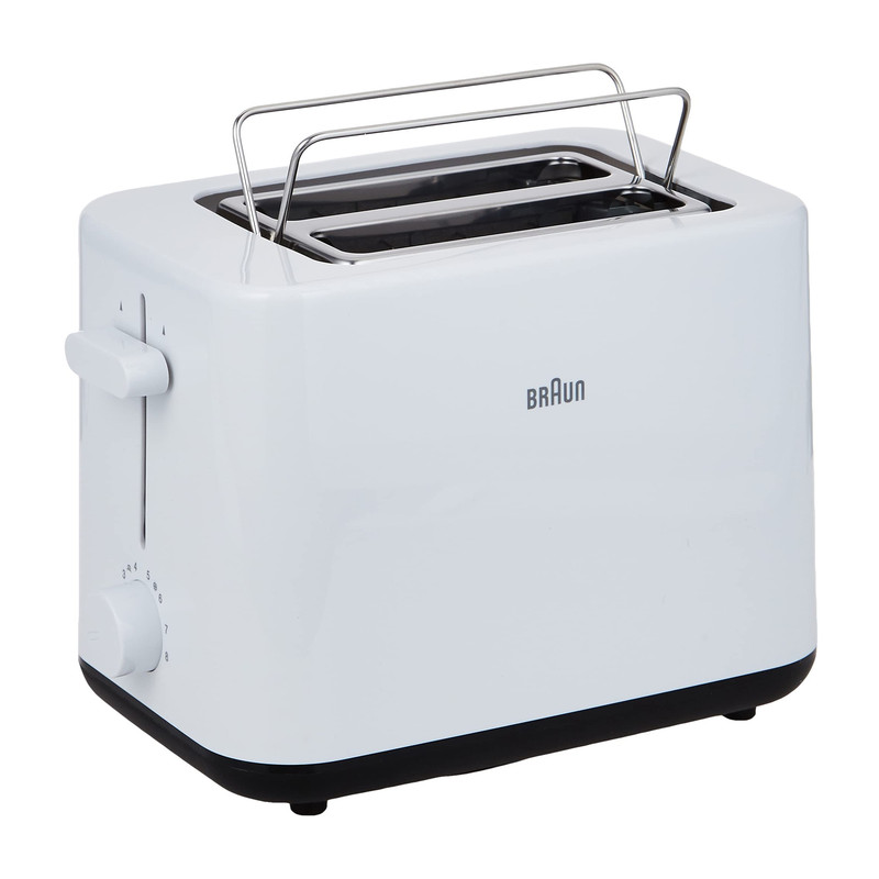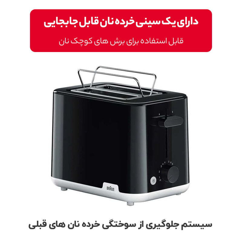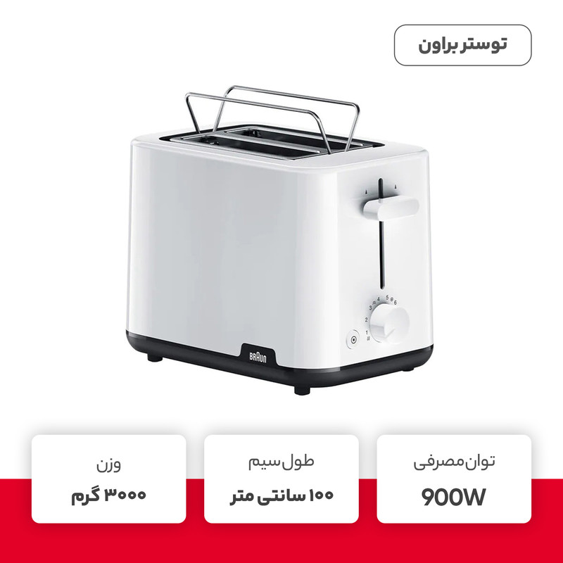 توستر براون مدل HT1010 این مدل امکان انتخاب سطح برشته شدن را صرف نظر از نوع نان تا 8 سطح فراهم می کند در نتیجه به راحتی می توان با این قابلیت انعطاف پذیر، رول و شیرینی های بزرگ نان را با خیال آسوده گرم و یا برشته نمود. به کمک سیستم بالابر Braun HT 1010، حتی برش های کوچک نان به آسانی از آن خارج می شود و بدین ترتیب از سوختگی خرده نان های قبلی و ایجاد بوهای نامطبوع جلوگیری می کند. همچنین سینی خرده ریز قابل جدا شدن نیز تمیز کردن آن را سهل تر می سازد. 3 عملکرد عالی همچون گرم کن مجدد، یخ زدایی و توقف عملیات را می توان از طریق پنل طراحی شده در کناره توستر، در موقعیت های مناسب بهره برد و به لطف سیستم محافظ 4 طرفه براون، از آرامش خاطر بیشتر و ریسک کمتر برخوردار گردید.توستر براون مدل HT1010 با توان مصرفی 900 وات، دستگاهی با کیفیت ساخت مطلوب و عملکرد آسان برای گرم نگه داشتن و یا برشته کردن نان، تولید و عرضه گردیده تا صبحانه ها را با خوردن نان داغ، دلچسب و لذتبخش تر نماید. این توستر براون محصولی زیبا از جنس پلاستیک است و بدنه آن به صورت عایق حرارتی ساخته شده تا در مدت استفاده، خنک بماند. تنظیمات عملکرد توستر که شامل یخ زدایی و گرم کردن مجدد است قابل انجام بوده و می توان علاوه بر تست کردن، نان های یخ زده را نیز با این توستر، یخ زدایی، گرم و در نهایت برشته نمود. همچنین برای این مدل، دکمه Cancel جهت لغو برشته شدن نیز تعبیه شده است. کشویی در پایین توستر جهت جمع آوری خرده نان ها و نظافت آسانتر قرار گرفته که بهتر است در هر بار استفاده، این سینی تخلیه شود تا در دفعات بعدی، بوی سوختگی ایجاد نگردد.